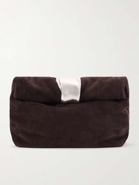 STAUD's clutch is true elegance – sleek, timeless and effortlessly wearable. Made from soft suede, it's rolled into a slouchy silhouette and adorned with a sculpted silver-tone 'Cuff'. A discreet zip at the back makes reaching your phone, cardholder or keys easy.