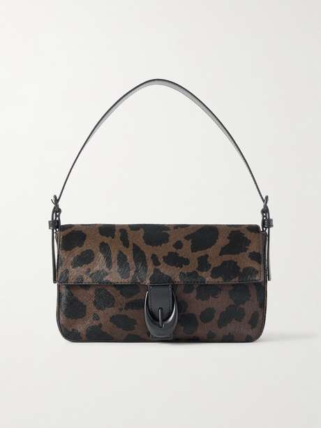 STAUD Harlow buckled leopard-print calf hair shoulder bag