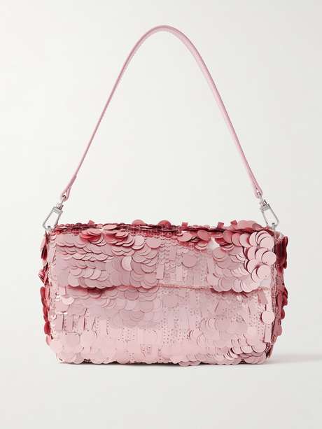 STAUD’s 'Timmy' bag is a perfect blend of artistry and texture. It's covered with oversized, light-catching sequins and has a detachable leather strap so you can carry it as a clutch. The fully lined interior has enough space for a smartphone, keys and lipstick.
