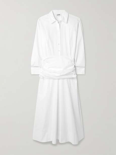 STAUD Indya gathered cotton-blend poplin midi shirt dress