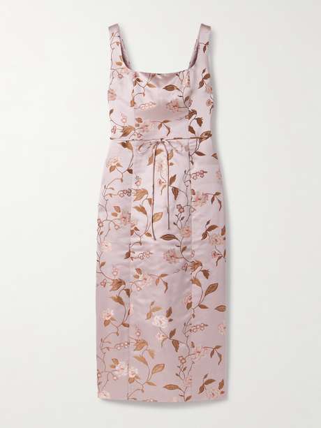 STAUD’s ‘Zoe’ dress is undeniably polished and elegant. It’s tailored from floral-brocade for a close fit and has a square neck and slim waist ties to cinch your frame. Complete the look with sleek pumps and a clutch.