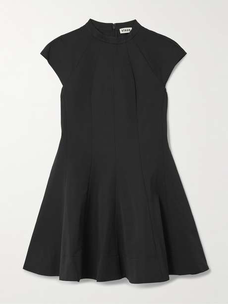 STAUD's 'Ellie' mini dress is cut from cotton-blend faille that lends a little structure to the flared shape. It has a high neckline and cap sleeves, and fits close through the body.