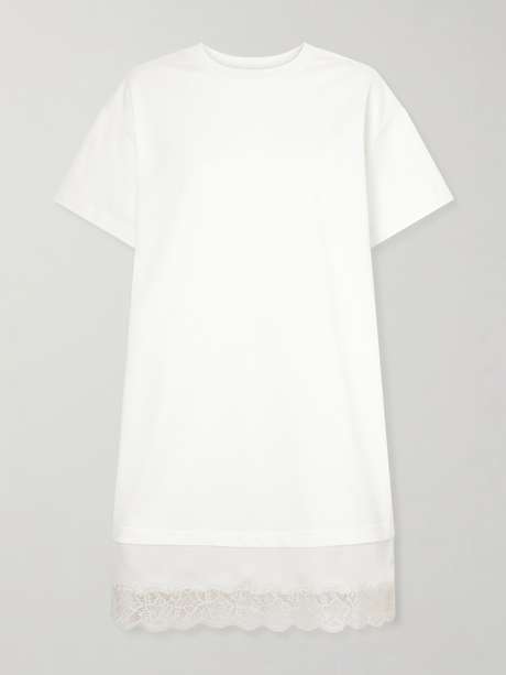 The shift silhouette of STAUD's 'Grier' dress feels effortless and elegant. It's made from cotton-jersey trimmed with a swathe of silk and lace across the hem. Complement the hues with pearl jewelry.