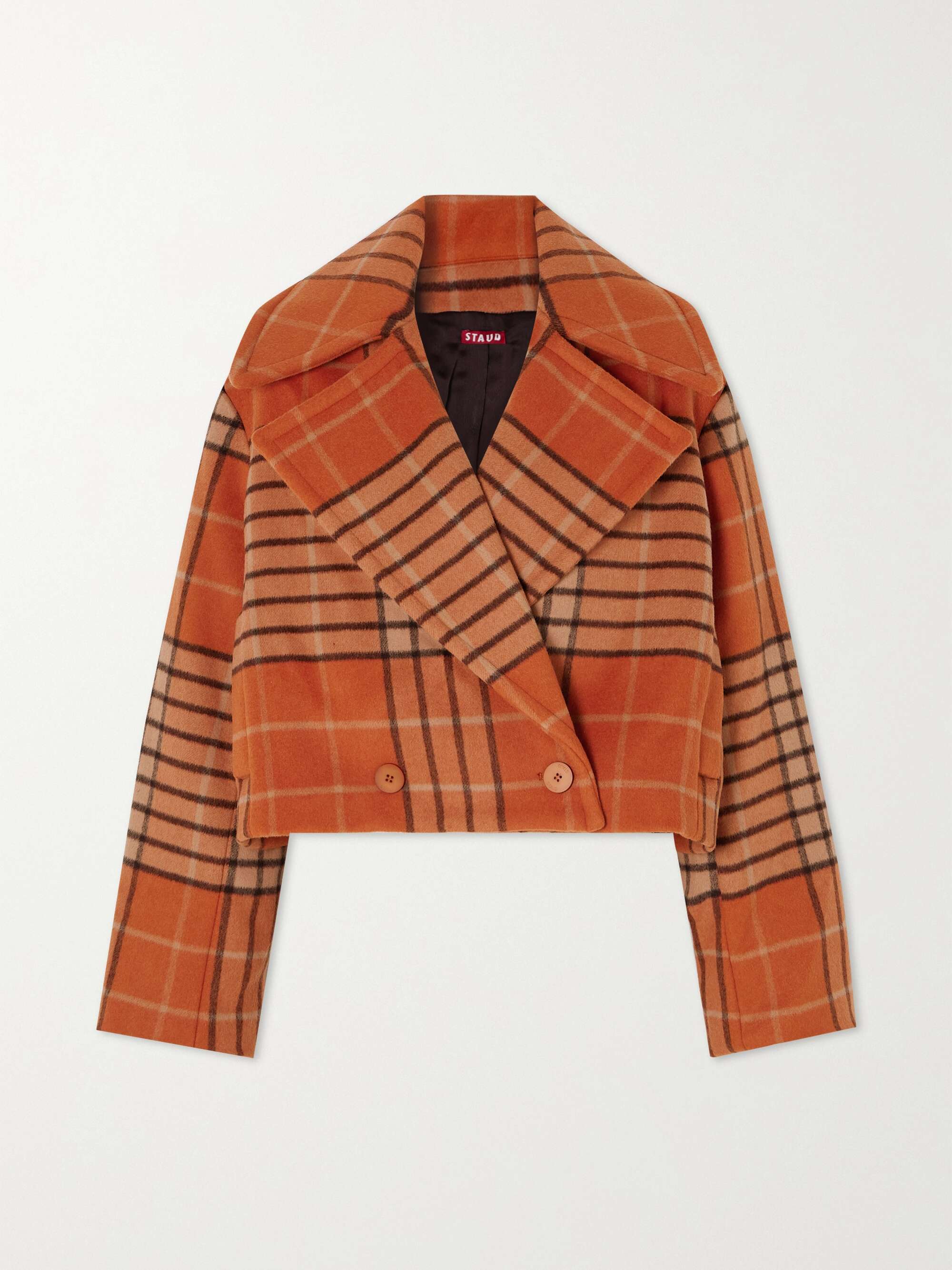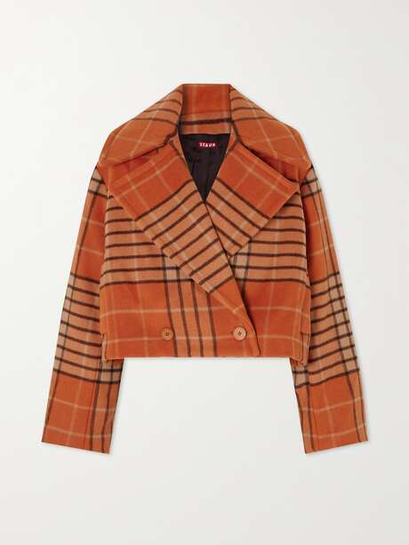 STAUD Mini Carver double-breasted checked wool-blend coat