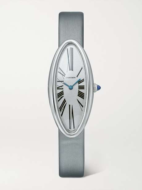 STEPHANIE WINDSOR Cartier Vintage Baignoire Allongée Model 2514 47mm 18-karat white gold and satin watch