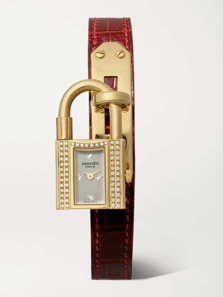 STEPHANIE WINDSOR + Hermès Vintage 1995 Kelly 16mm 18-karat gold, diamond and leather watch (Fits up to 7'' wrist)