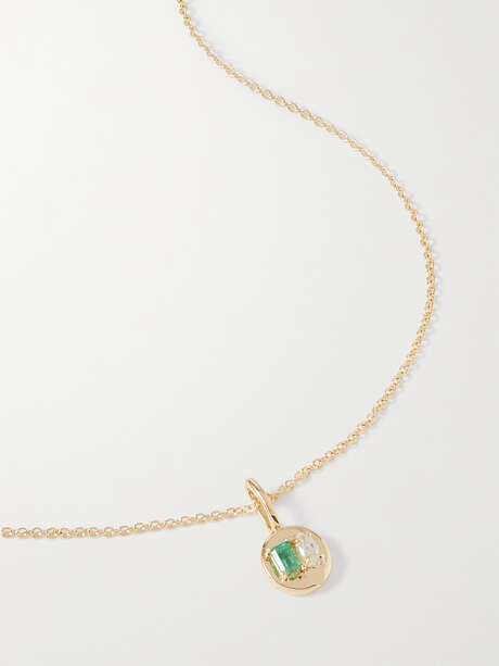 STONE AND STRAND 10-karat gold emerald and diamond necklace
