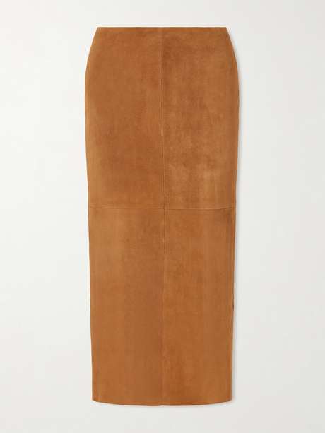 STOULS' innovative machine-washable leathers arrive with the label's own maintenance wax. This 'Winona' midi skirt is paneled from supple suede in a straight column shape. Slits at the side allow ease of movement.