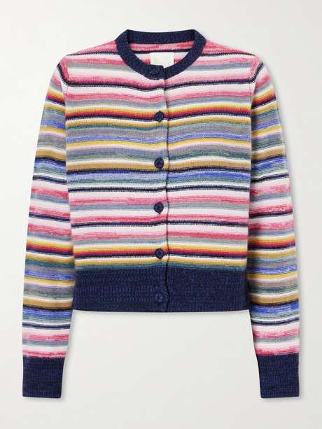 Suzie Kondi's 'Kandria' cardigan brings a playful rhythm to classic knitwear. Spun from soft cashmere, it's patterned with multicolored stripes and shaped to a cropped silhouette, finished with a neat buttoned front and contrasting trims.