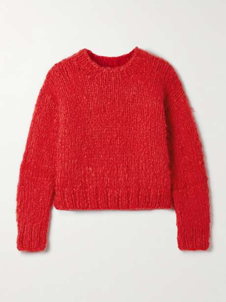 Suzie Kondi describes her namesake label as "a whole lot of cozy". This 'Jooshi' sweater is hand-knitted from incredibly soft cashmere in a vibrant 'Poppy' shade and has a boxy shape. Wear yours partially tucked into jeans on chilly, laid-back days.