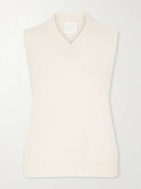 If you like to play with proportion, you'll love Suzie Kondi's sweater vest – it has a slightly loose fit with a high V-neckline. Finished with ribbed trims, it's been made in New York from pure cashmere in a light-gray mélange. Layer yours with an oversized shirt.