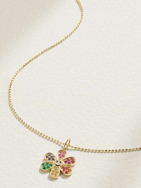 SYDNEY EVAN Daisy Happy Face 14-karat gold multi-stone necklace