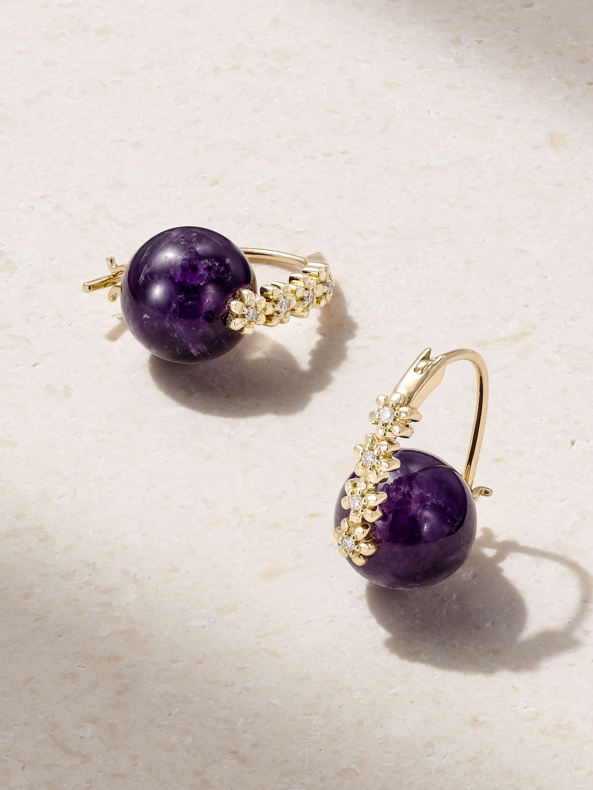 SYDNEY EVAN Tiny Daisy 14-karat gold, amethyst and diamond earrings