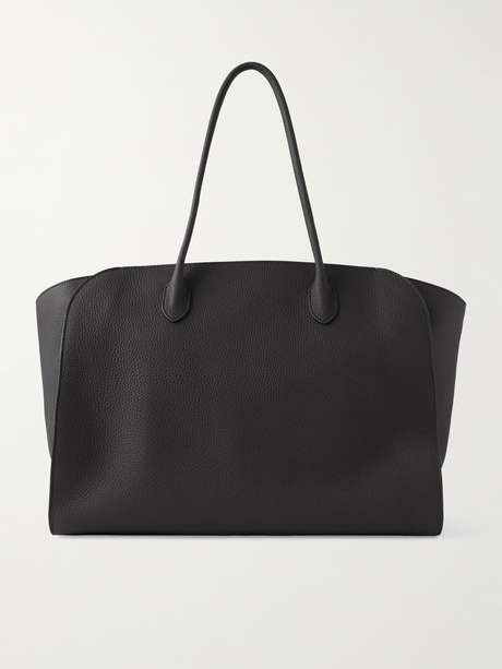 The Row's 'Marlo 17' tote is modeled on the brand's iconic 'Margaux' style. Made in Italy from black textured-leather, it has the same rounded shape with expandable sides and plenty of space inside for everything you need for an overnight trip - think change of clothes, water bottle and toiletries.