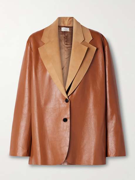 The Row's innovative 'Lysandre' jacket is underpinned with a detachable satin lining that can be styled on its own as a top. Cut from supple light-brown leather, it has an effortlessly relaxed shape with layered notch lapels and slightly dropped shoulders.