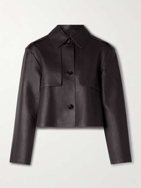 Theory's jacket showcases the brand's commitment to fine fabrics and exquisite cuts. Tailored from buttery soft leather, it has a cropped length and trench coat-inspired details. Layer it over a neutral blouse or sweater.
