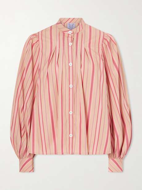 Thierry Colson's 'Yana' blouse is made from lightweight cotton-poplin in a tonal-pink striped pattern. It has a relaxed fit with a mandarin collar and pleated balloon sleeves. Wear it with the matching pants for a coordinated look.