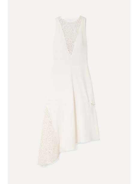 TIBI Open-back asymmetric guipure lace-paneled embellished crepe midi dress