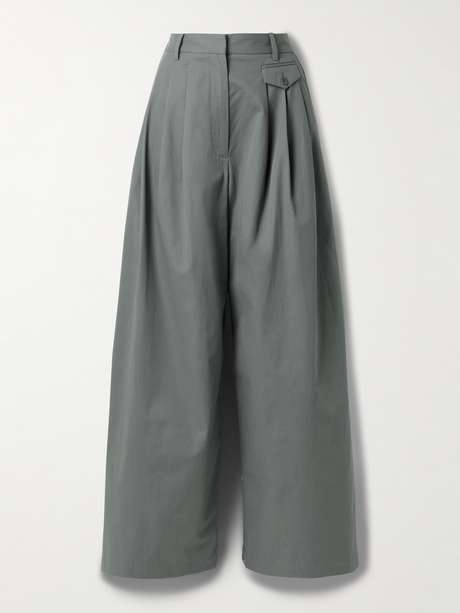 Tibi's pants are designed with sharp pleats at the high waist, giving them nice volume. They're tailored from cotton-twill in an endlessly versatile gray shade and have wide legs. Balance the proportions with slim-fitting tops.