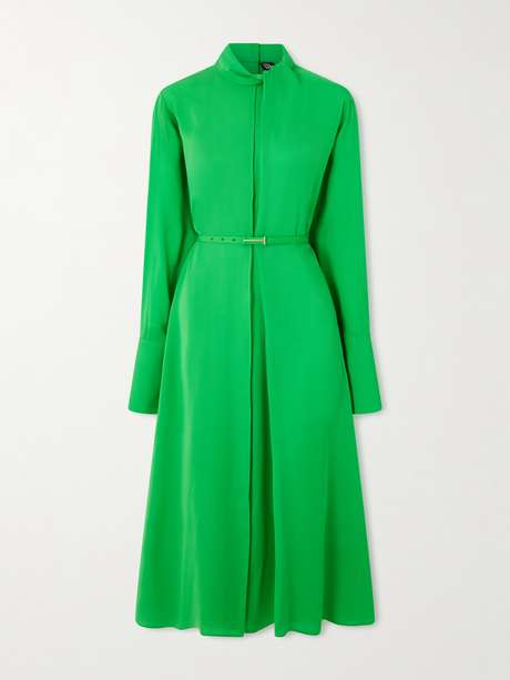 TOM FORD's dress comes in a vibrant green that's sure to re-energize your wardrobe. Made from silk-georgette, it has an artfully draped neckline and a slim belt and concealed placket to streamline the silhouette. Match your jewelry to the gold-tone 'T' hardware.