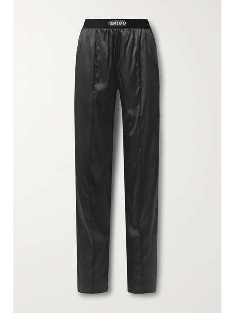 Expertly tailored in Italy, TOM FORD's pajama-style pants are suitable for nice dinners or to instantly elevate casual daytime looks. They're made from lustrous silk-satin blended with stretch and have an elasticated, logo-detailed velvet waistband. Balance the relaxed legs with heeled sandals.