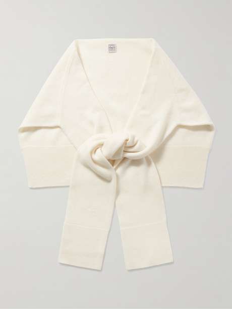 Tapping into classic preppy styling, TOTEME's scarf is designed to look like a sweater tied over your shoulders. It's made from sumptuous cashmere with traditional ribbed trims and a tonal embroidered logo.