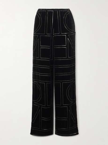 TOTEME's pants are patterned with the house's monogram. Inspired by pajamas, they're cut from devoré-velvet in an easy, wide-leg fit.