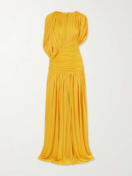With a focus on sculptural restraint, TOVE reimagines eveningwear through fluid form. Cut from airy chiffon, the gathered construction creates soft volume that moves effortlessly, lending the silhouette an elegant, almost weightless finish.