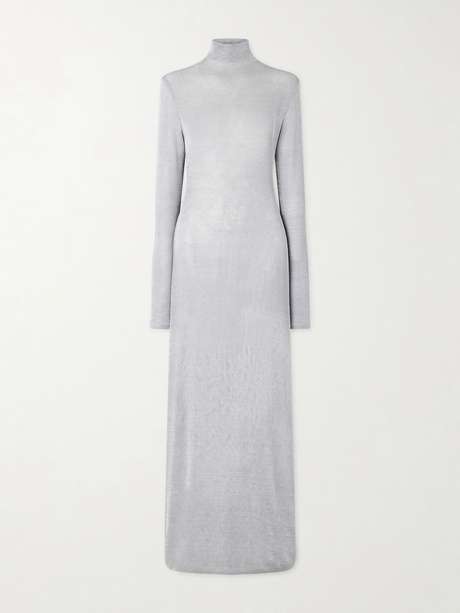 TOVE's dress is a celebration of the label's understated elegance. Designed for a semi-sheer column profile, it’s woven with glistening threads for an illuminating finish.