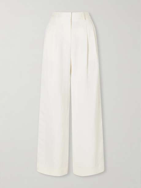 TWP's refined 'Sulli' pants will be an invaluable addition to your suiting repertoire. Woven with touches of linen and coated for a slight sheen, they have wide legs pressed with sharp pleats and brown striped accents. They'll pair effortlessly with sweaters and shirts alike.