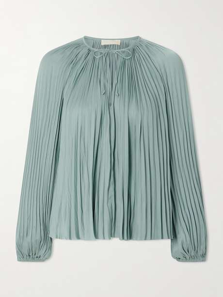 Ulla Johnson's 'Electra' blouse is made from satin that's pleated throughout to enhance its loose shape. It's gathered along the shoulders and has a tie fastening at the neckline - leave it done to create a lower cut.