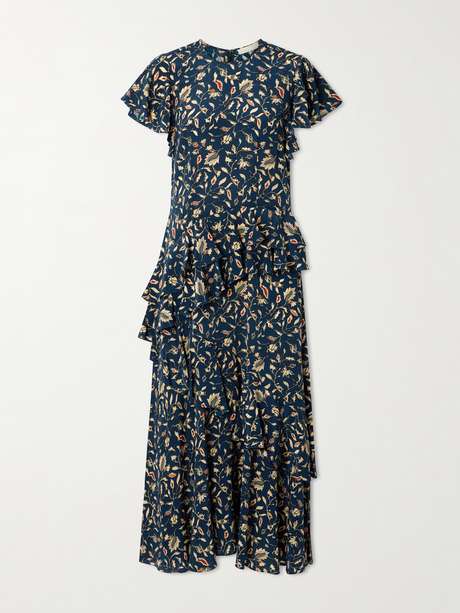 ULLA JOHNSON Amaia ruffled printed silk crepe de chine midi dress