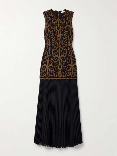 Ulla Johnson's 'Auryn' dress is designed with a mesh overlay and taffeta appliqués inspired by Victorian embroidery. The base is cut from sheer silk-chiffon that's pleated to emphasize its flowy shape.