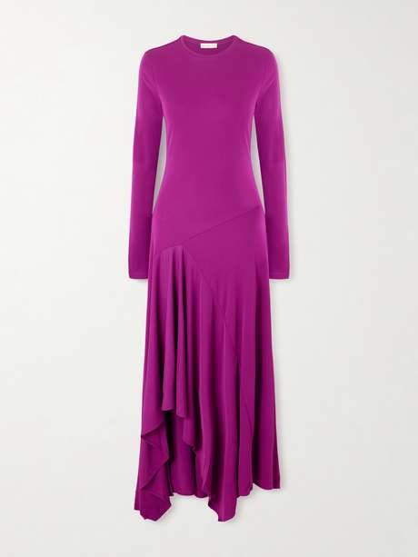 Ulla Johnson's 'Leyna' dress is from the Resort '26 collection, where fluidity inspires evocative silhouettes. It's made from jersey and gathered along the waistline to create a swishy, stepped hem.