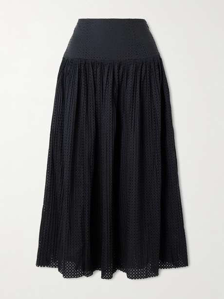 ULLA JOHNSON Nalla pleated perforated cotton midi skirt