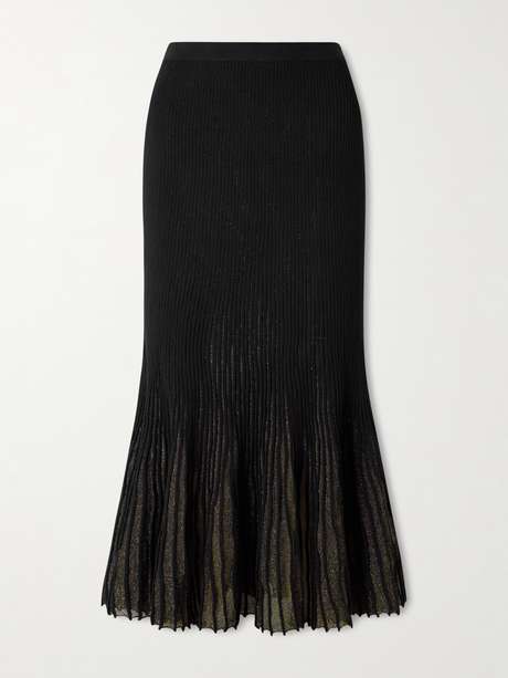 ULLA JOHNSON Vera pleated metallic ribbed-knit midi skirt