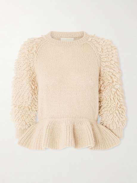 The sleeves of Ulla Johnson's 'Selene' sweater are hand-finished with beautiful, looped detailing by the label's partner craftspeople in Peru. It's knitted from soft alpaca-blend for a relaxed fit and has a flouncy peplum hem.