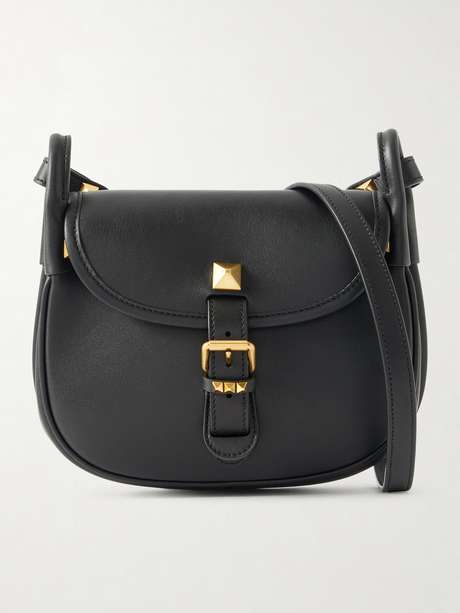 Valentino Garavani's shoulder bags will always stand the test of time thanks to their enduring craftsmanship. Made from leather in a saddle shape, this design is dotted with 'Rockstuds' in an antique gold finish. Stow your phone, lip balm and cardholder inside.
