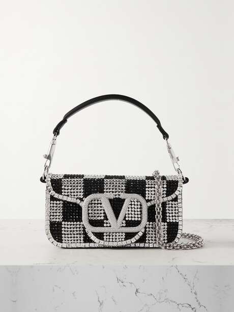 VALENTINO GARAVANI Locò small checked crystal-embellished leather shoulder bag
