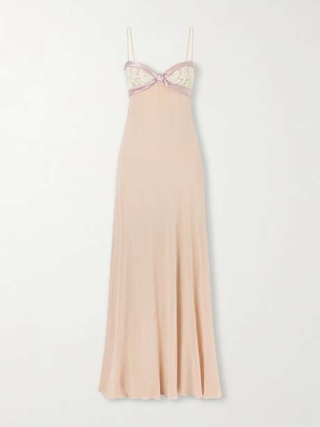 VALENTINO GARAVANI Lace- and satin-trimmed silk-georgette gown