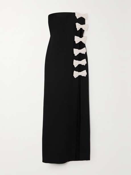 VALENTINO GARAVANI Strapless bow-detailed wool and silk-blend crepe gown
