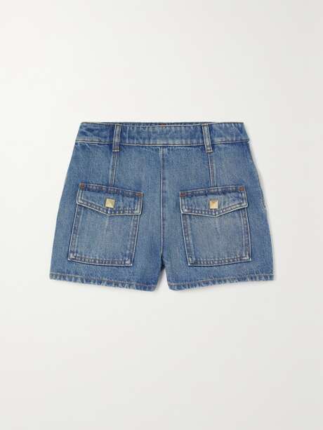 These shorts are distinctively Valentino Garavani - the pockets are adorned with iconic 'Roman Rockstuds'. They're cut from slightly faded blue denim and have a high-rise waistband fitted with belt loops. Style yours with everything, from tanks to floaty blouses.