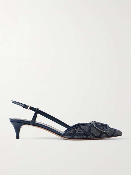 VALENTINO GARAVANI VLOGO 40 embellished leather-trimmed jacquard slingback pumps