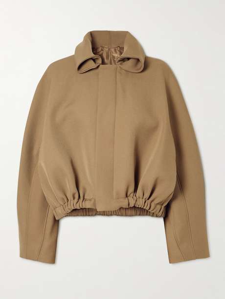 The roll-neck detail on Victoria Beckham's jacket is inspired by last-minute adjustments in the mirror. Made from wool-drill, it has an oversized shape with an elasticated hem and concealed placket. Take cues from the Fall '25 runway and wear yours with the matching pants in our edit.
