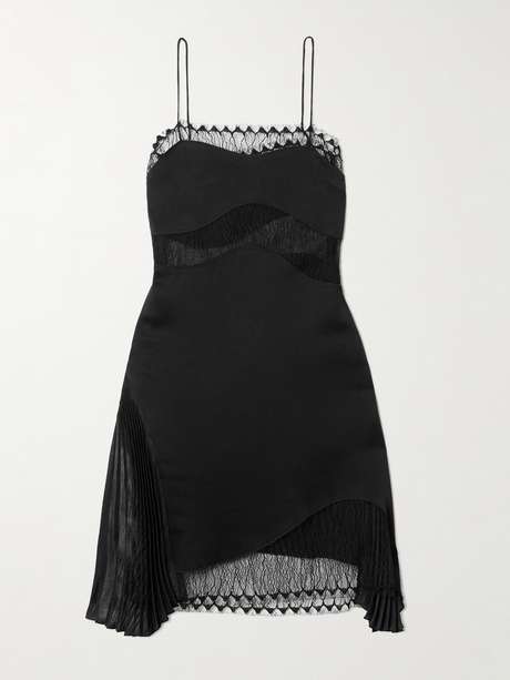 EXCLUSIVE AT NET-A-PORTER. Victoria Beckham believes in the transformative power of dressing up. Intended to inspire confidence, this mini dress is cut from smooth satin-crepe trimmed with panels of floaty pleated chiffon and wispy lace along the neckline and asymmetric hem. Reach for jewelry to pull the details into focus.