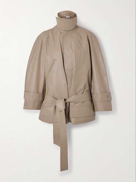 Victoria Beckham's jacket is an elevated take on the classic overcoat. It's cut in an enveloping shape from buttery soft leather and has a coordinating belt and a wide throat latch.