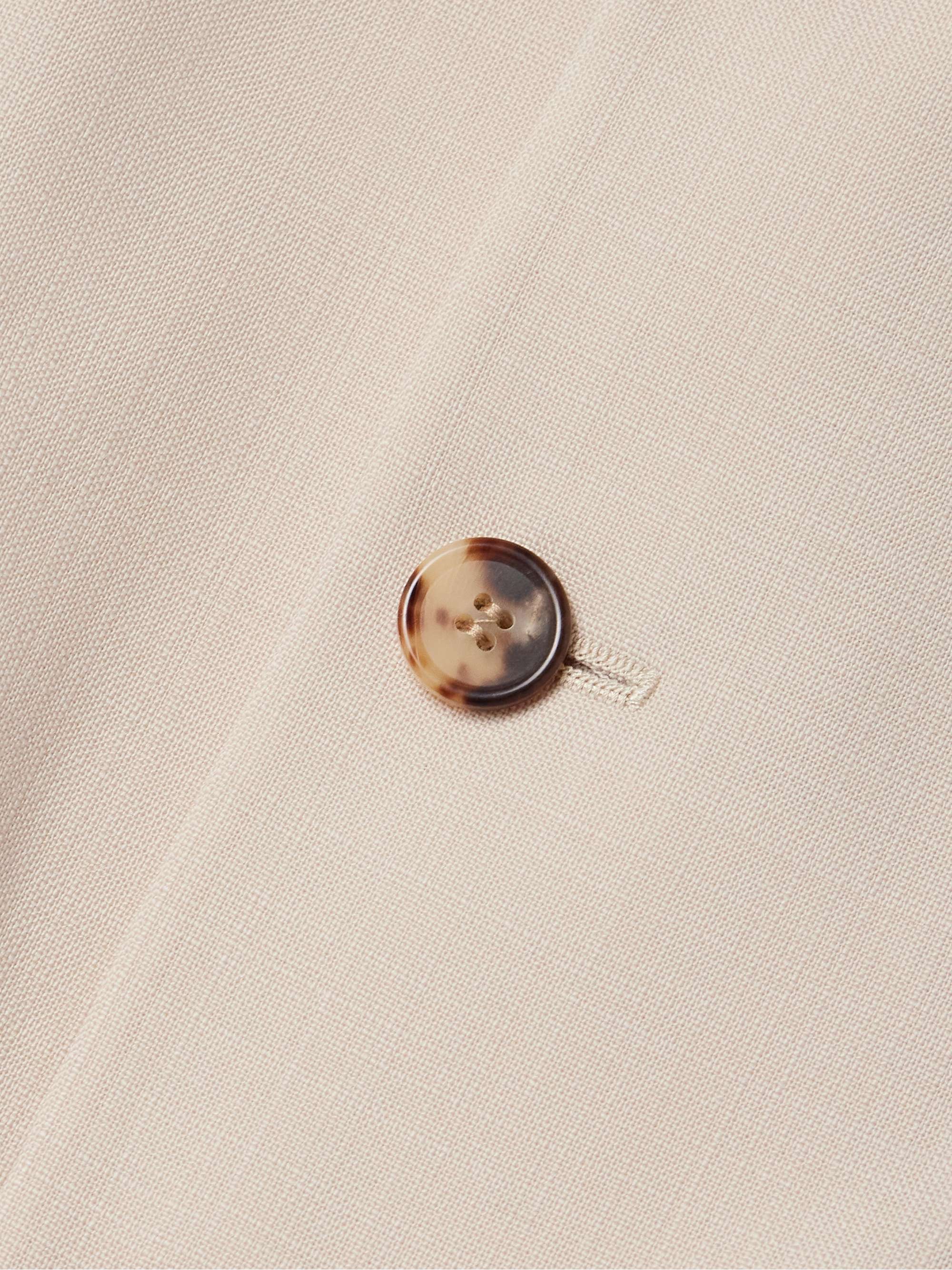 WARDROBE.NYC's chic tailoring is loved by everyone from Hailey Bieber to Rosie Huntington-Whiteley. This blazer is made from beige wool-crepe with angular padded shoulders and notched lapels. The full satin lining ensures smooth layering.