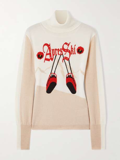 In collaboration with Markarian, We Norwegians' sweater brings charm to après-ski dressing with its playful jacquard motif of red cable cars and alpine blooms. Knitted in Italy from a wool and cashmere blend, it's designed with a paneled construction and cozy turtleneck for extra warmth.