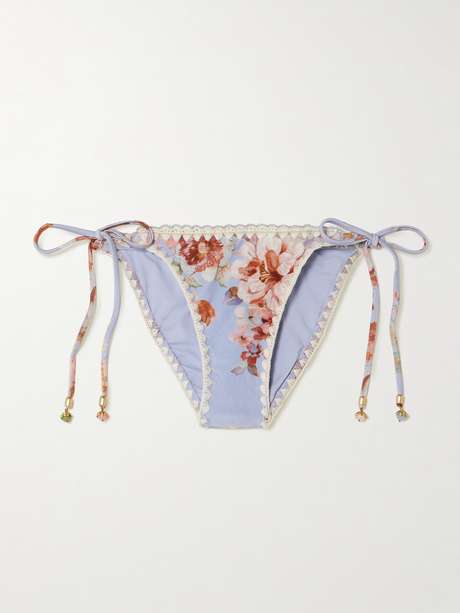 ZIMMERMANN Awaken crochet-trimmed embellished floral-print bikini briefs