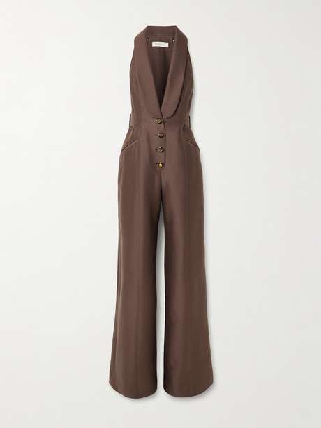 ZIMMERMANN Alchemy buckled wool and silk-blend halterneck jumpsuit